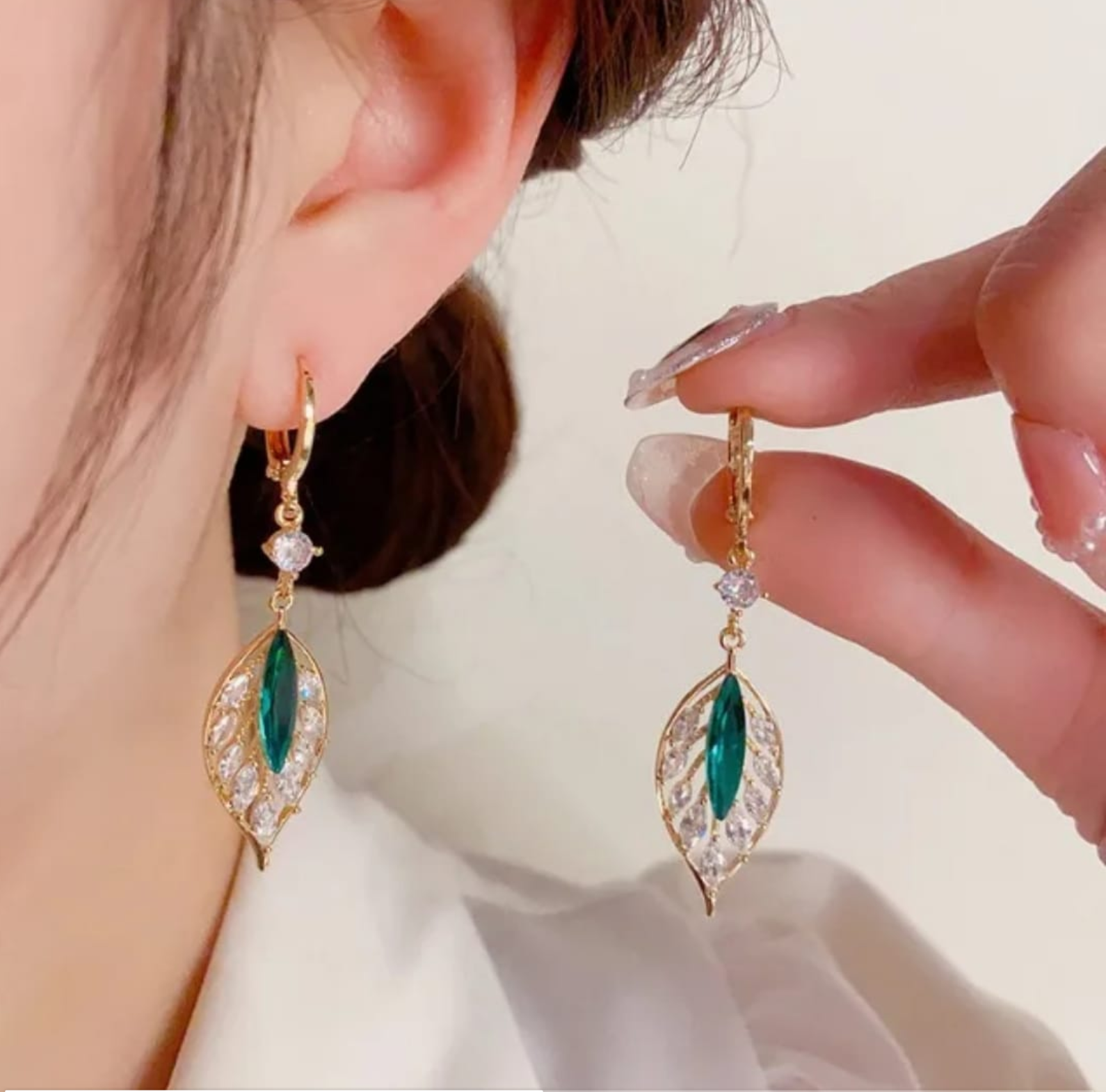 Green Leaf Drop Earrings